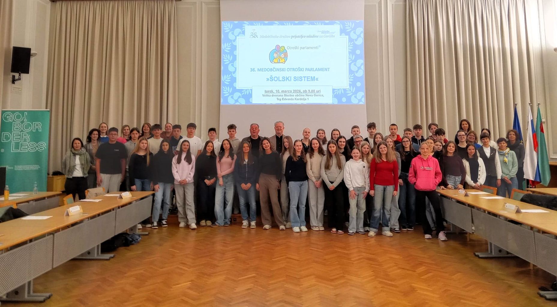 11.03.2026V torek, 10. marca 2026 je v Novi Gorici zopet odmevala beseda mladih. V veliki dvorani MONG-a se je namreč odvijal 36. medobčinski Otroški parlament. Prisotne je pozdravila generalna sekretarka Zveze prijateljev mladine Slovenije, ga. Breda Krašna, podžupan Mestne občine Nova Gorica, g. Marko Tribušon in podžupan občine Miren- Kostanjevica, g. Zvonko Ferfolja. Predstavniki iz 13 goriških osnovnih šol so predstavili Pohvale in pobude za bolj kakovostno šolo in občino.