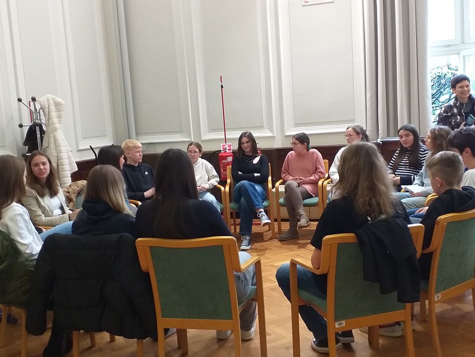 Mladi so se potem v štirih delovnih skupinah pogovarjali o podtemah ((Odnosi in sodelovanje, Učne vsebine in šola za življenje, Metode in načini učenja/poučevanja ter Vrednote in odgovornost) ter nato zanimive zaključke predstavili na plenarnem zasedanju. Izbrane delegate sedaj čaka še regijski parlament v Idriji ter nacionalni v Ljubljani.
