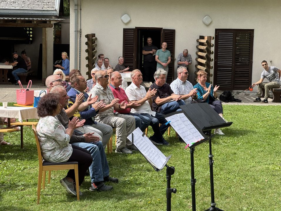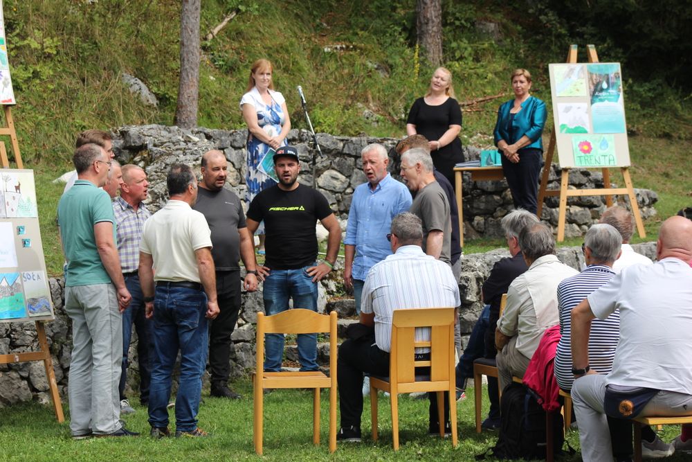Udeleženci srečanja smo se zadržali še na dobri domači pogostitvi, klepetu in sprehodu do bližnje Krajcarce ali Soče.