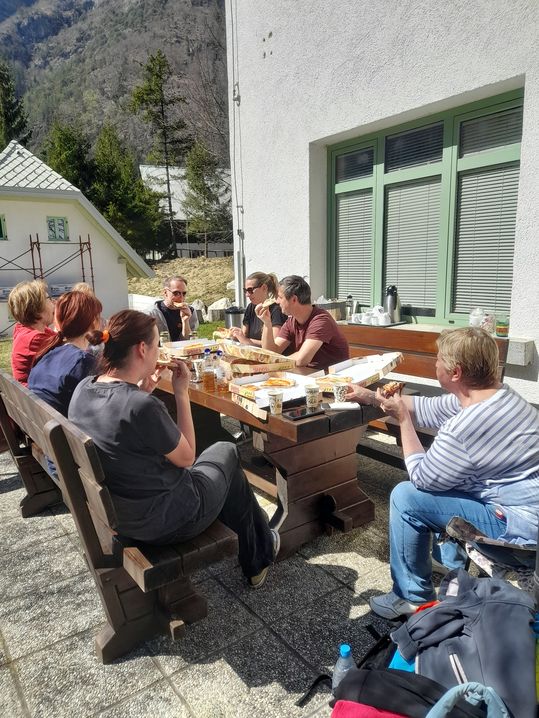 V torek, 7. 4. 2026, smo na svetovni dan zdravja izkoristili čudovit sončen dan za združitev prijetnega s koristnim. V Trenti, kjer stoji "naš" Dom Triglavska roža, smo skupaj z Ustanovo Fundacija BiT Planota organizirali teambuilding.